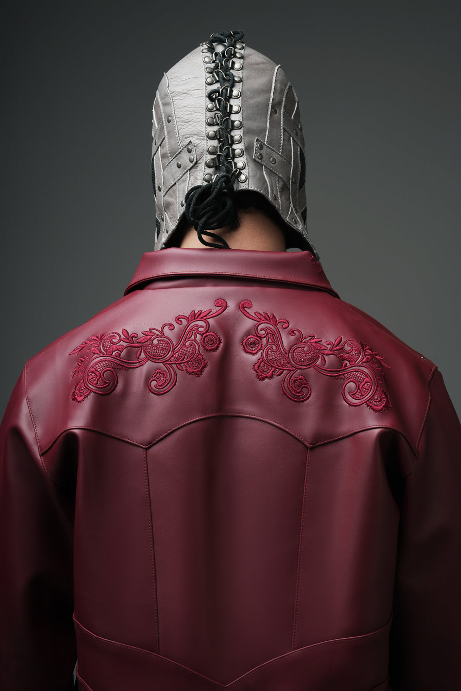SLEEVES, BACK & THE FRONT ADORNED WITH SCULPTED LEAF MOTIFS WOVEN AROUND DELICATE LATTICE STRUCTURES, CREATING A LAYERED ORNAMENTAL PATTERN. SPOT THE KEY!